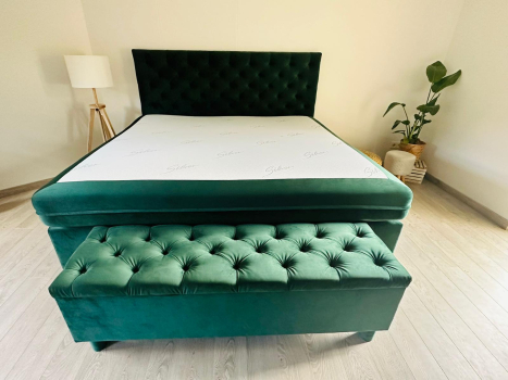 Komplektācija: gulta ar atsperu līstēm un kājas ar auduma vai eko ādas apdari